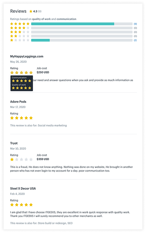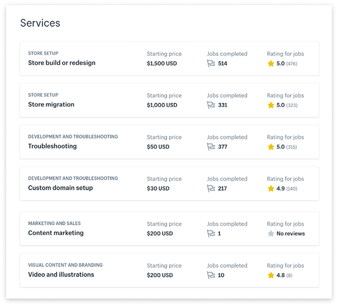While profiles were a good start to differentiate Experts (Shopify freelancers), comparing profiles was