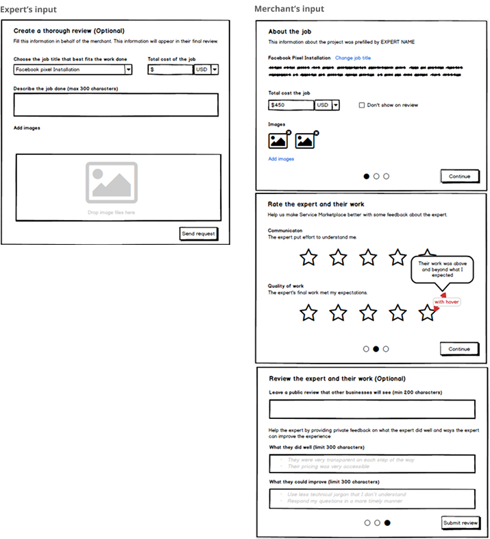 Expert profiles helped differentiate partners, but comparison was slow and lacked trust signals; leaving merchants uncertain, limiting expert credibility, and weakening platform governance. I designed a multi-dimensional reputation system that captures merchant feedback at the right moments in the job lifecycle, accelerating first contact and job creation, increasing merchant trust, enabling expert ranking, and clearly signaling partner expertise through service-specific ratings.